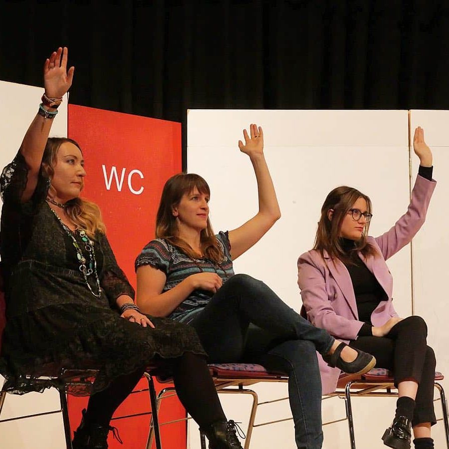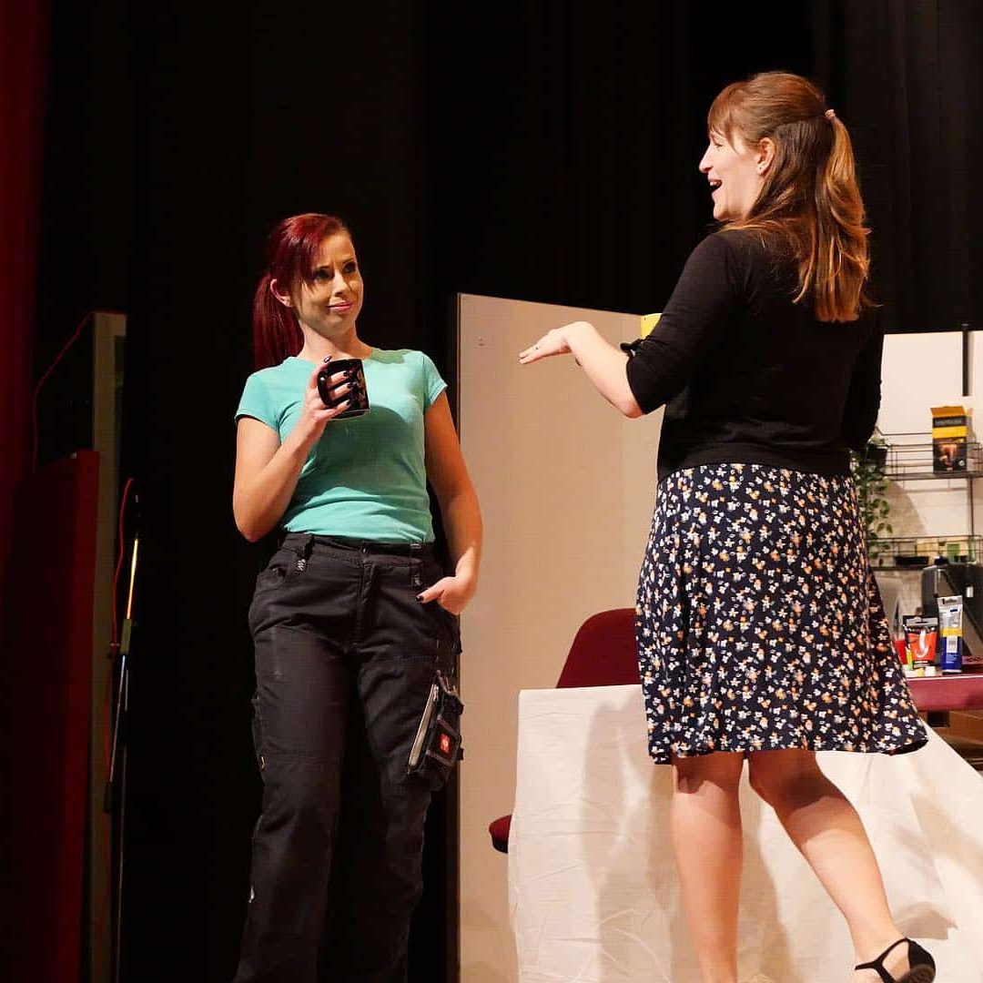 … eine Gruppe von 25 Mitgliedern, die Lust auf Theater haben. Es ist uns wichtig, dass jeder die gleichen Chancen hat und sich ausprobieren kann. Im Unterschied zu vielen anderen Theatergruppen spielen wir fast ausschließlich Stücke, die unsere Mitglieder selbst geschrieben haben. Egal ob du Schauspieler*in, Autor*in, Techniker*in oder Helfer*in sein möchtest, bei uns hat jeder die gleichen Chancen sich einzubringen!